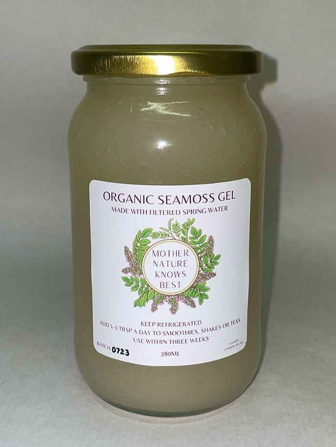 l00% Wildcrafted Sea Moss Gel / Sea Moss is said to contain 92 of the 102 minerals of which the body is made of. The Sea Moss is washed and soaked in filtered spring water. It is a natural source of vitamins and minerals. It increases your energy levels, supports your Immune system, assists in weight loss, has anti-Inflammatory properties & supports Thyroid function.